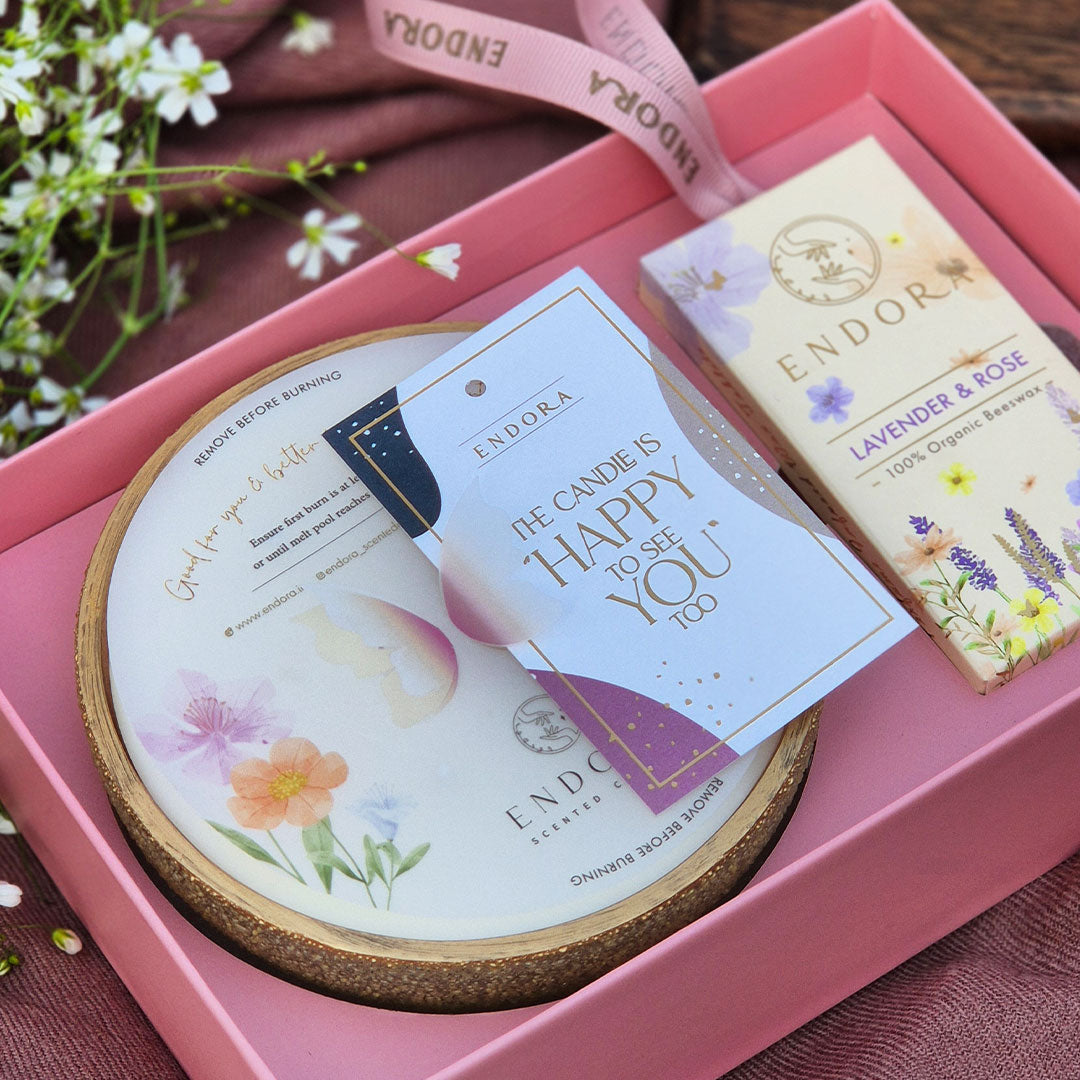 Indulge in the harmonious combination of artistry, fragrance, and versatility with our Crinkle Finish Glass Bowl Scented Candle in Dusty Rose and Opulent Gold, paired with our Wax Tablet Gift Set. Elevate your space and immerse yourself in a world of beauty and luxury.