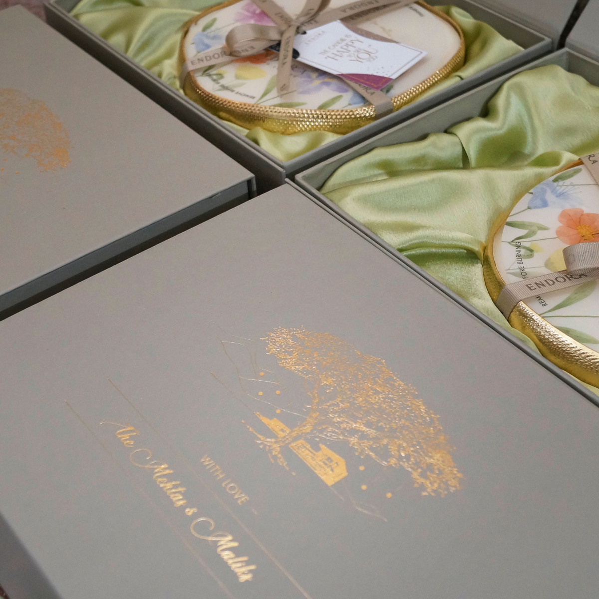 Transform your special moments into lasting memories with Endora's bespoke gifting service. We understand that each celebration deserves its own signature touch, which is why our expert team crafts thoughtfully curated gift experiences for every occasion. From intimate celebrations to grand weddings, and corporate events to personal milestones, we specialize in creating perfectly personalized presents that reflect both the giver's thoughtfulness and the recipient's taste. Our seamless service ensures a stress-free experience, allowing you to focus on what matters most – celebrating life's precious moments. Let us help you elevate your gifting experience with our artisanal candles and luxury presentations.